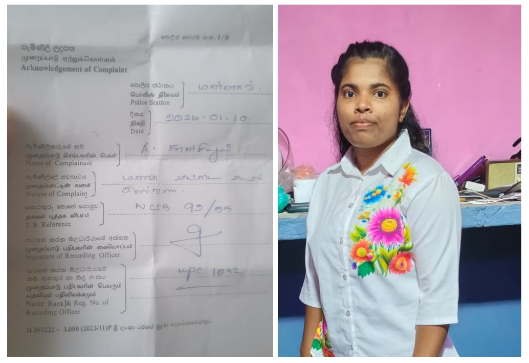- மன்னார் பிரதேச செயலாளர் பிரிவில் உள்ள சௌத்பார் பகுதியில் வசித்து வந்த 21 வயதுடைய இளம் குடும்பப் பெண்ணை காணவில்லை என குறித்த பெண்ணின் உறவினர்களால் மன்னார் பொலிஸ் நிலையத்தில் முறைப்பாடு செய்யப்பட்டுள்ளது.