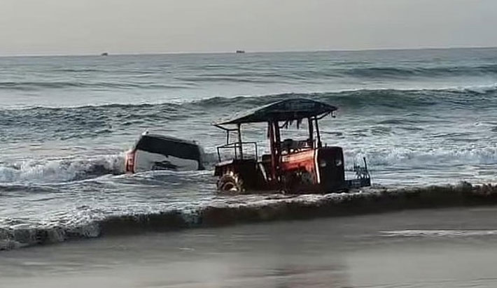 இதனால் கார் கடலுக்குள் பாதியிலே நின்றது. அப்பகுதி மீனவர்கள் உடனடியாக குதித்து, காரிலிருந்த ஐவரையும் பத்திரமாக மீட்டனர். பின்னர் காவல்துறை மற்றும் உள்ளூர் மக்களின் உதவியுடன், காரை கனரக வாகனத்தின் மூலம் கரைக்கு கொண்டு வரப்பட்டது.