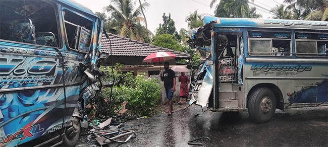 இந்த விபத்து இன்று (12) காலை இடம்பெற்றுள்ளதாக பொலிஸார் தெரிவித்தனர். இரண்டு தனியார் பஸ்கள் ஒன்றுடன் ஒன்று மோதியதில் இந்த விபத்து இடம்பெற்றுள்ளதாக பொலிஸார் தெரிவித்தனர்.