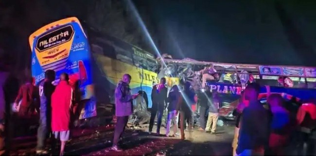 உகாண்டாவின் மிகவும் பரபரப்பான நெடுஞ்சாலைகளில் ஒன்றில் இரண்டு பேருந்துகள் மோதி விபத்துக்குள்ளானது.