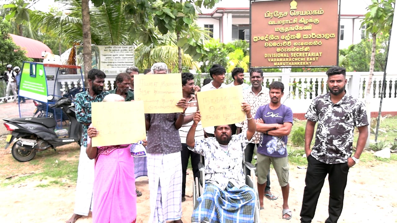 இந்நிலையில் தங்களுக்கு அநீதி இழைக்கப்பட்டு இருப்பதாக வடமராட்சி கிழக்கு நாகர்கோவில் மேற்கு மக்கள் பிரதேச செயலகத்தில் ஆர்ப்பாட்டம் ஒன்றை மேற்கொண்டனர்.