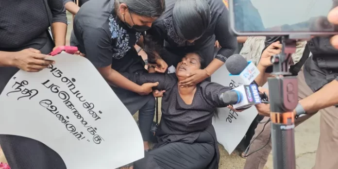 இந்த போராட்டத்தில் கலந்து கொண்ட குறித்த சிறுவனின் தாயார் ஊடகங்களுக்கு கருத்து தெரிவித்துக்கொண்டிருந்தபோது திடீரென மயங்கி கீழே விழுந்தார். இதன்போது அங்கு பரபரப்பு ஏற்பட்டது.