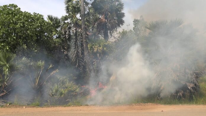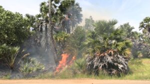 நிலவிவரும் கடும் காற்றால் தீ ஏனைய பனை மரங்களுக்கும் பரவி வருவதால் அதிகளவான பனை மரங்கள் தீயில் கருகியுள்ளதை காணக்கூடியதாக உள்ளது.