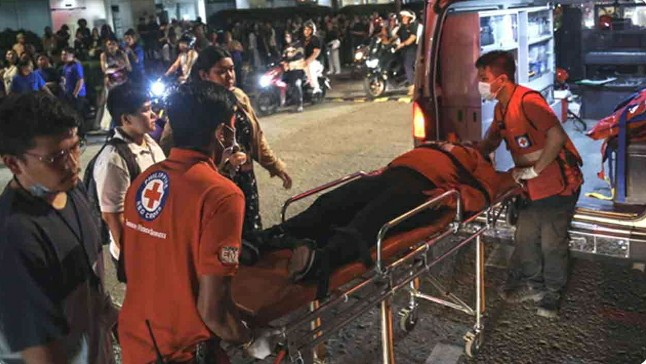 கட்டிட இடிபாடுகளில் சிக்கியவர்களை மீட்க மீட்புப் பணிகள் தொடர்ந்து நடைபெறுகின்றன.
