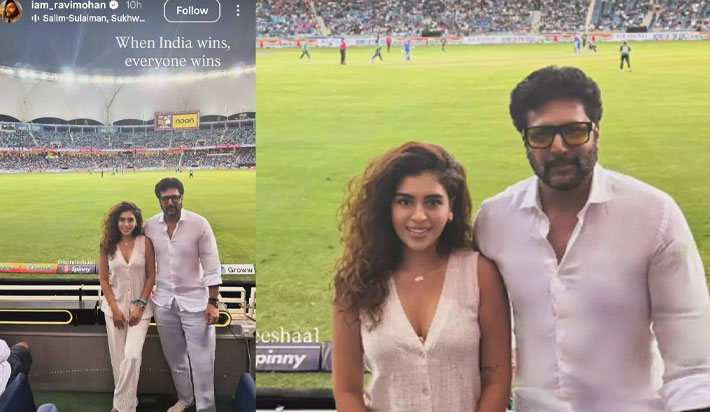 இந்த ஆட்டத்தை நடிகர் ரவி மோகன் மற்றும் கெனீஷா ஆகியோர் நேரில் கண்டு களித்தனர். இதுகுறித்த புகைப்படத்தை ரவி மோகன் தனது Instagram Story-யில் பகிர்ந்துள்ளார்.