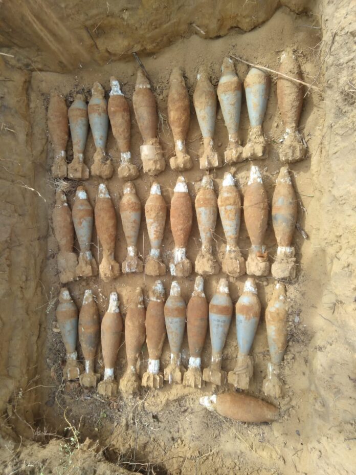 கிளிநொச்சி பளை பொலிஸ் பிரிவுக்கு உட்பட்ட முகமாலை வடக்கு பகுதியில் நேற்றைய தினம் பிற்பகல் 2:30 மணியளவில் வெடிக்காத நிலையில் 31 குண்டுகள் மீட்கப்பட்டுள்ளன.