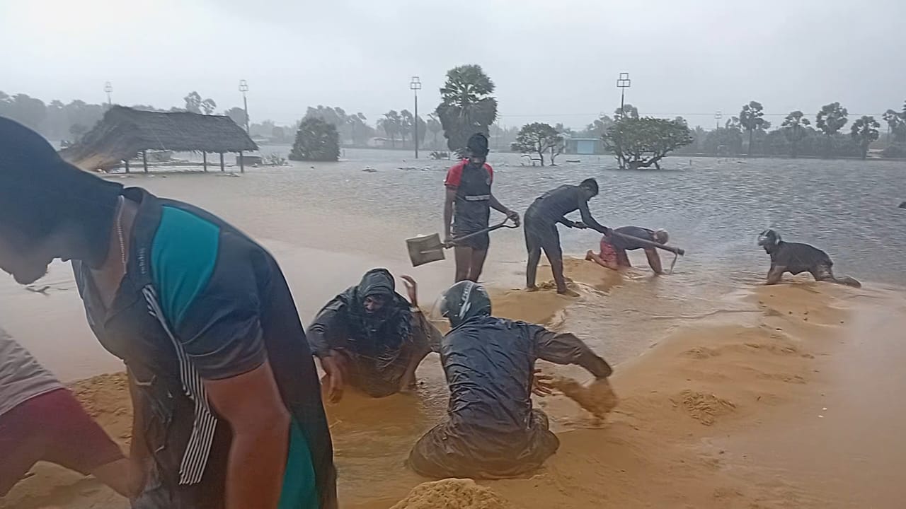 யாழ்ப்பாணம் வடமராட்சி கிழக்கு கட்டைக்காடு கிராமம் மழை நீரால் பாதிப்படைந்துள்ளது